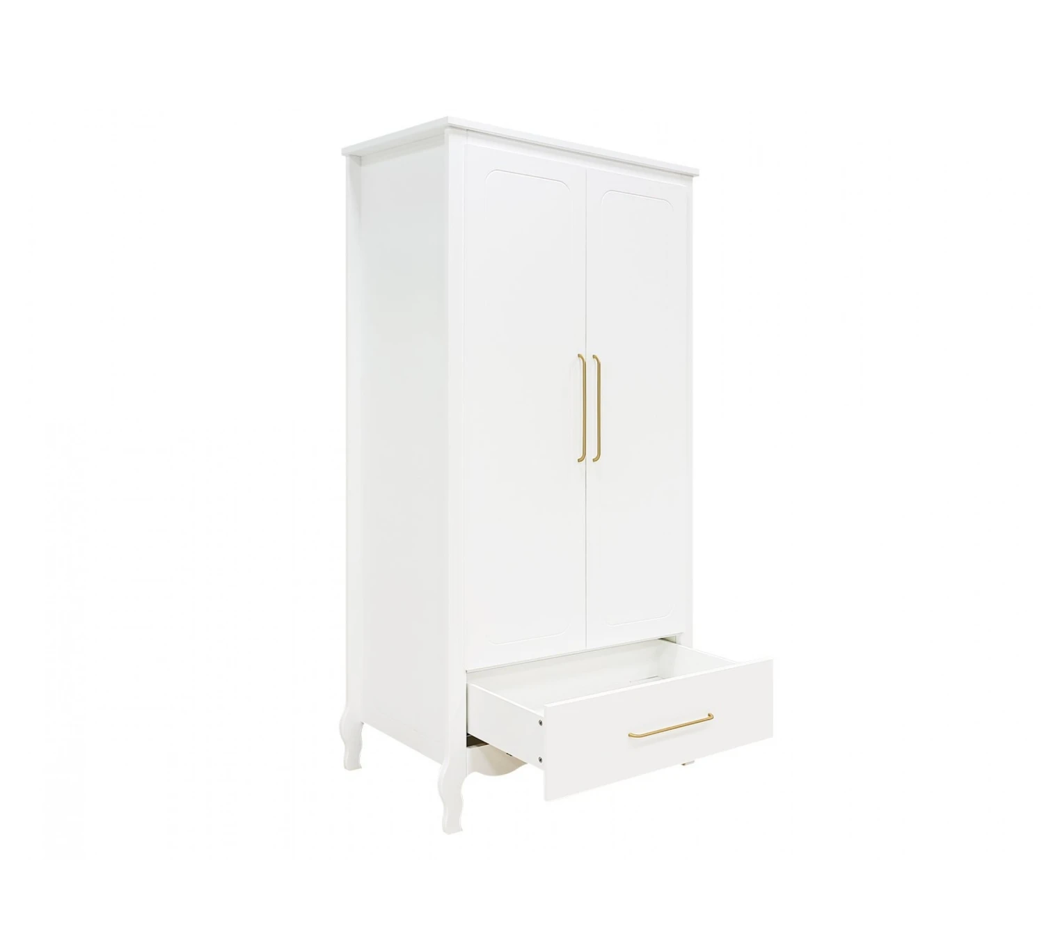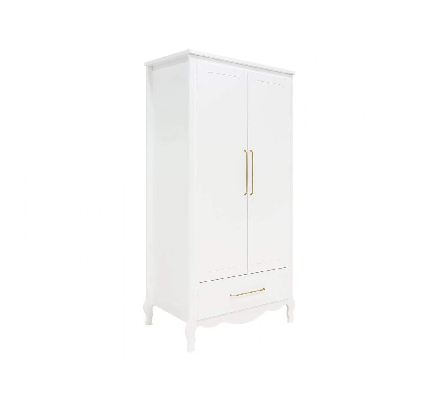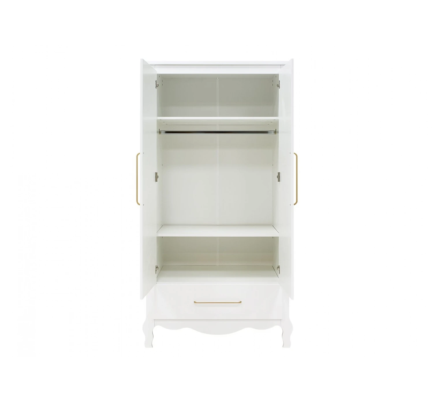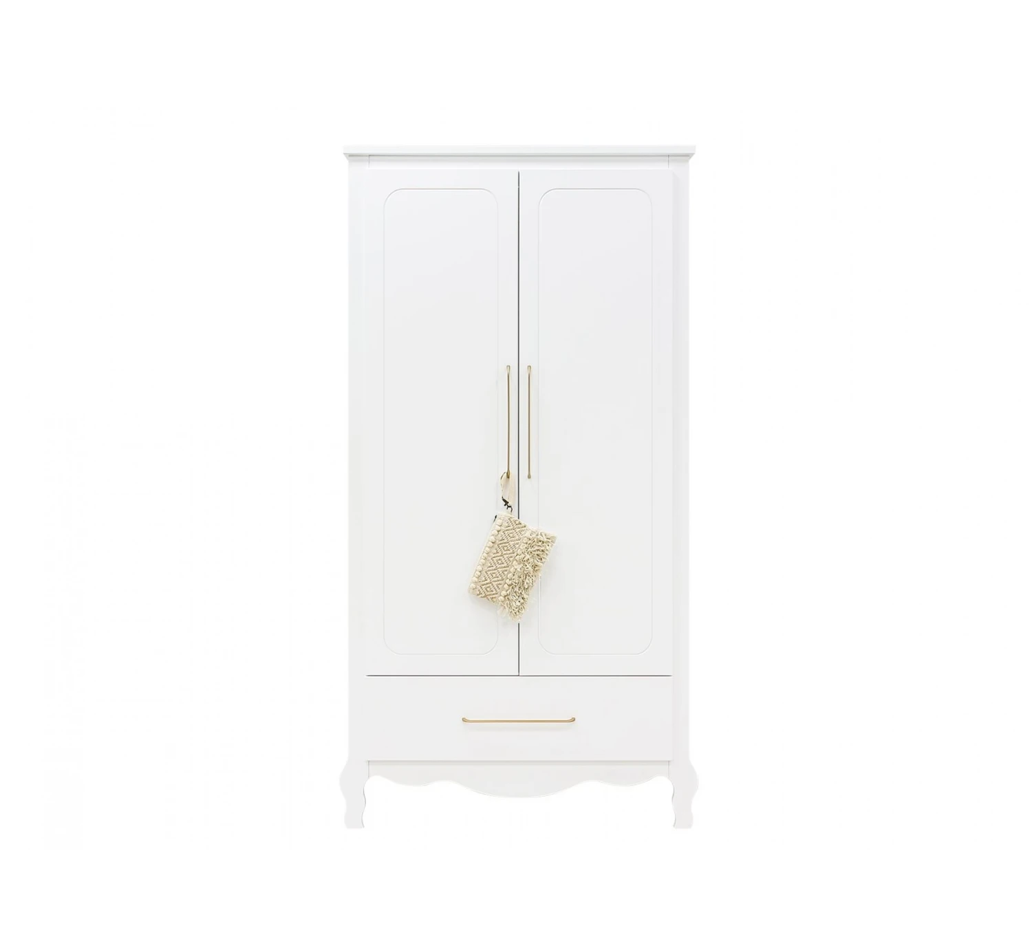 Deze ruime 2-deurskast XL Elena van het merk Bopita is niet alleen een schitterend meubel voor in de babykamer, maar biedt ook nog ontzettend veel opbergruimte. De kast is voorzien van een lade aan de onderzijde. Achter de twee grote deuren gaat veel ruimte schuil. De kast wordt geleverd met een vaste legplank, een hangroede en een in hoogte verstelbare legplank. De deuren en lade zijn voorzien van ranke, matte, goudkleurige handgrepen. Dit is kenmerkend voor de serie Elena. De deuren zijn bovendien voorzien van subtiele groeven voor een extra chique effect.