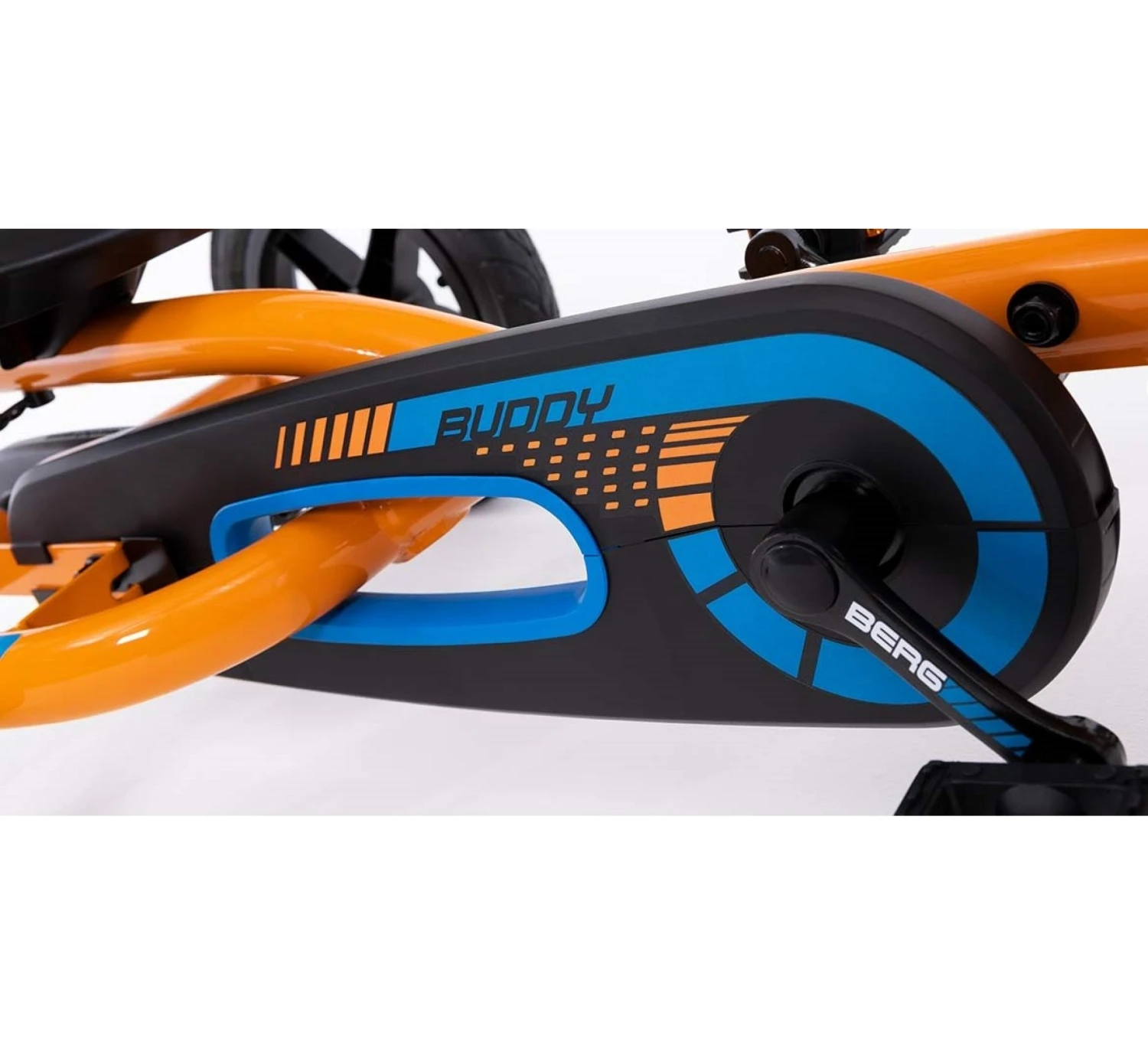 De BERG Buddy is uitgerust met het unieke BFR-systeem. BFR staat voor Break, Freewheel en Reverse. Door het BFR-systeem kun je met de pedalen remmen, maar ook direct na stilstand achteruit rijden. Dit maakt de BERG Buddy super eenvoudig en gemakkelijk te berijden.