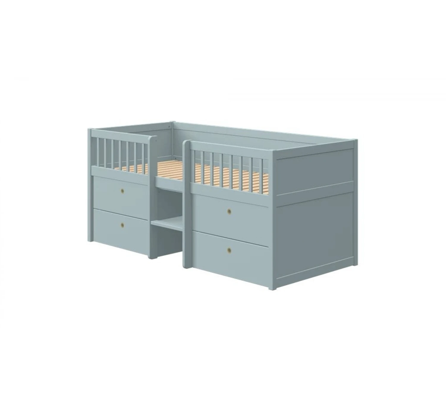 Het bed Freja van Flexa is een bed voor de stoere peuter. Deze lage halfhoogslaper is namelijk voorzien van voldoende opbergruimte onder het bed, zodat je kindje er veel spulletjes kwijt kan. Het bed is toegankelijk via het trapptje, waarbij de vakken erachter dienen als nisje om spulletjes in te kunnen zetten. De vier laden aan de linker- en rechterzijde van de trap bieden veel ruimte om allerlei spulletjes, speelgoed of kleding in kwijt te kunnen. Opruimen wordt met dit bed een feestje! Dit bed is voor ieder kind ideaal om in te spelen en te slapen. Het bed is verkrijgbaar in verschillende kleuren.