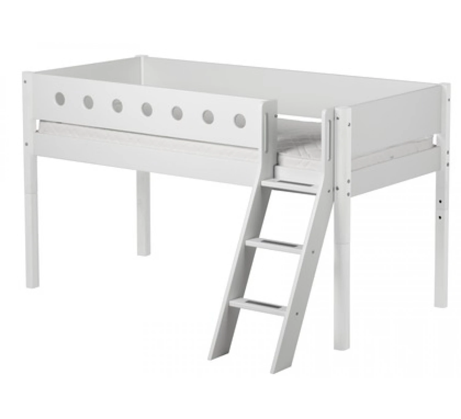 Deze robuuste halfhoogslaper van Flexa is de droom van ieder kindje. Het bed is voorzien van een schuine ladder, waarbij de sporten voorzien zijn van antislipstroken. Het bed wordt geleverd met een uitvalbeveiliging waardoor je kindje ’s nachts niet uit bed valt. De halfhoogslaper is gemaakt van MDF en massief berkenhout.